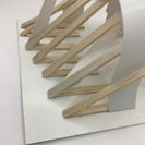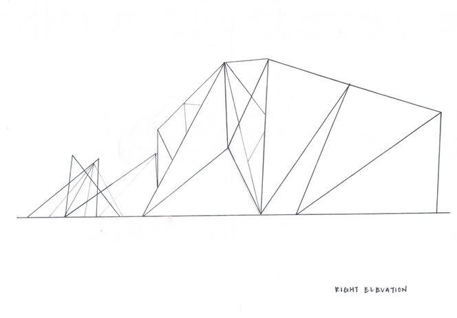This model is about shape and contrast. I curve the triangle shape and make a wavy pathway. Semi- transparent triangles on the top control the light wavelength which penetrate into the space.